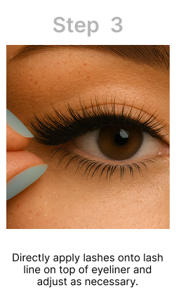 3. Directly apply lashes onto lash line on top of eyeliner and adjust as necessary.