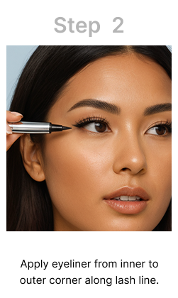 2. Apply eyeliner from inner to outer corner along lash line.